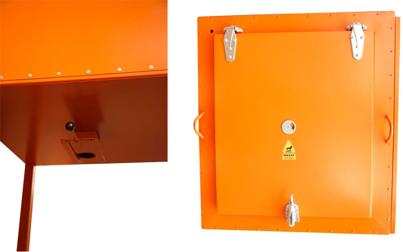 2 Kademeli Tozaltı Kaynak Tozu Kurutma Fırınlarımızın doldurma kapağı fırının üst bölümündedir. Kapak açılarak üst hazne üst seviyeye kadar doldurulur, üst kademe termostatı kullanma talimatına uygun olarak ayarlandıktan sonra kurutma işlemi başlatılır. Kurutma işlemi tamamlandıktan fırının orta sürgüsü eleman tarafında açılarak kurutulmuş toz alt kademeye alınır. Tüm Kaynak Tozu alt kademeye aktıktan sonra orta sürgü eleman tarafından kapatılır.